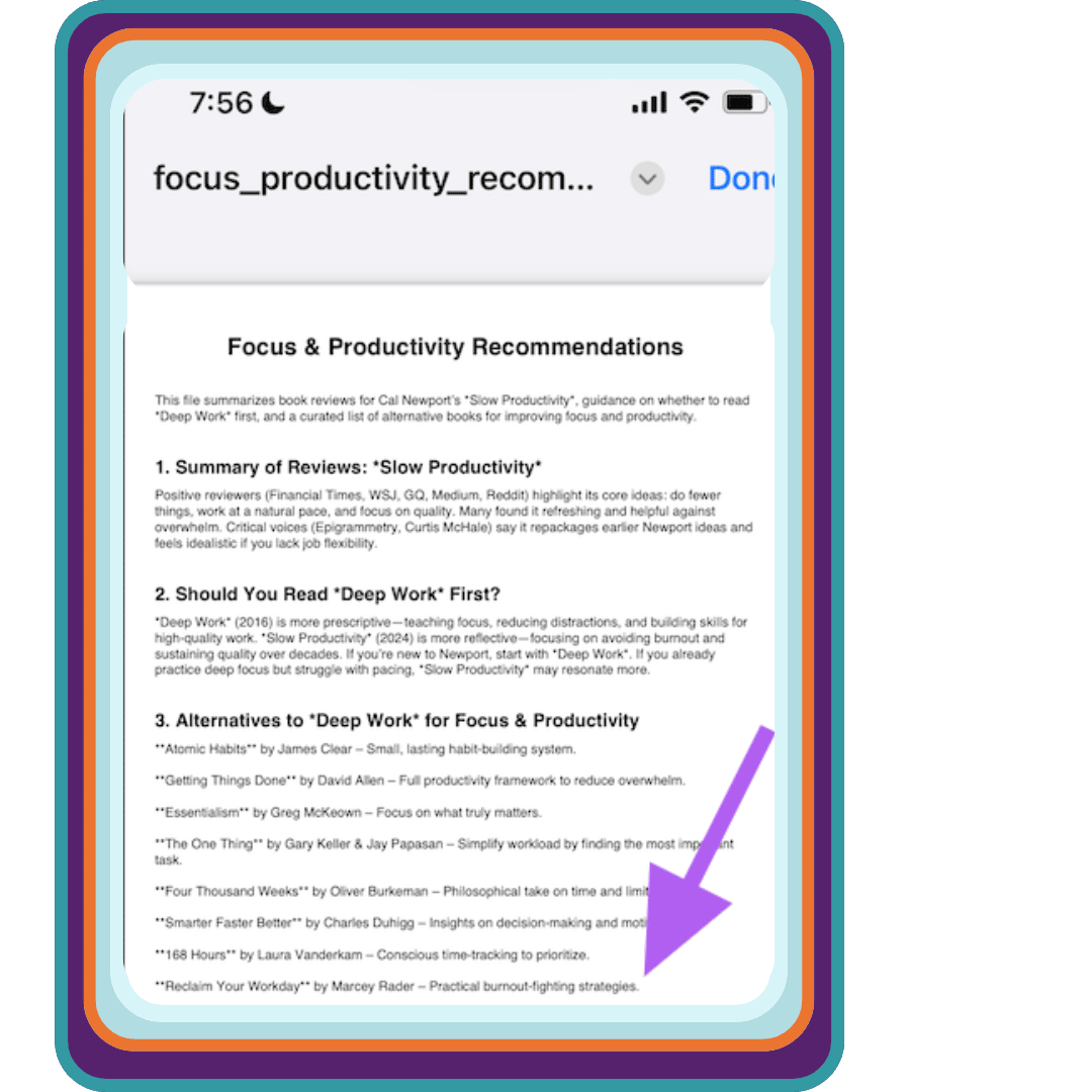 A former client asked if he should read Cal Newport’s latest book, and sent me the screenshot below, where “Reclaim Your Workday” was listed alongside other worthy options. I screamed because (a) I’m the only self-published author and (b) everyone else is a New York Times bestseller. 🥹